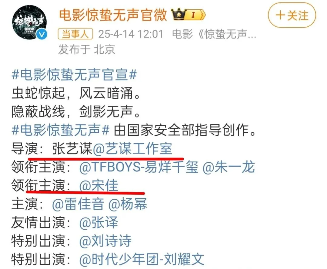 首先,张艺谋作为本届评委会主任,而宋佳又要出演他的新片《惊蛰无声》,虽然娱乐圈相互合作实属正常,但有这层关系难免让人联想到是不是在为新片造势。